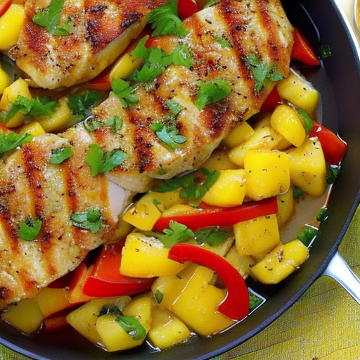 A delicious dish featuring juicy chicken breast, fresh pineapple, and sweet mango.