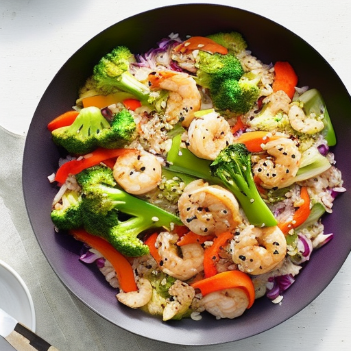 A healthy and hearty stir-fry with oatmeal, vegetables, and seafood.