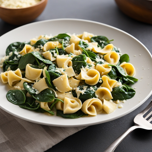A delicious and creamy dish made with cheese tortellini, baby spinach, and fresh parmesan cheese in a 2% low-fat milk sauce.