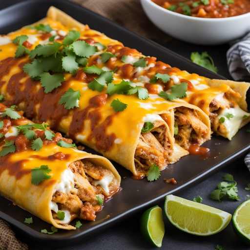 A classic Mexican dish with tender chicken, spicy sauce, and melted cheese wrapped in warm tortillas.