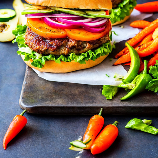 11. 11. Assemble the burger by placing a grilled patty on top of one stuffed bell pepper half and topping it with sautéed vegetables.