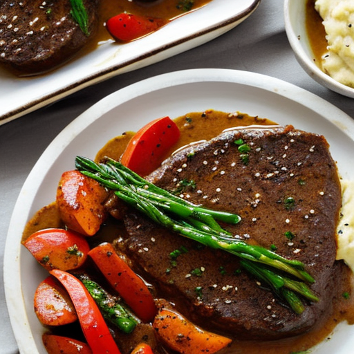 7. Serve the cube steaks with mashed potatoes and steamed vegetables for a complete meal.