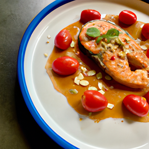 This delicious dish is a perfect combination of savory and sweet flavors. The salmon is lightly pan-fried and combined with a creamy tomato and peanut butter sauce for a unique flavor that is sure to please.