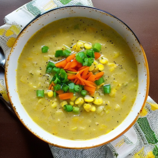 A delicious creamy soup with sweet corn, potatoes, and celery.