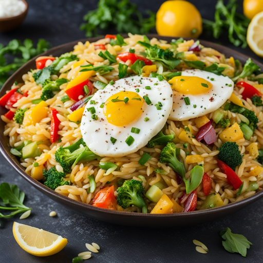 A delicious and colorful vegetable stir-fry with orzo pasta, perfect for a quick and healthy meal.