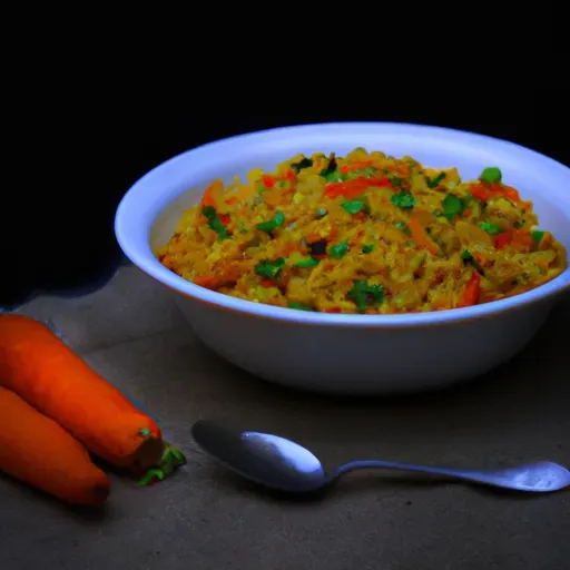 2. Add bell peppers, carrots, kurkuma, oatmeal, salt and pepper. Cook for 5 minutes, stirring occasionally.