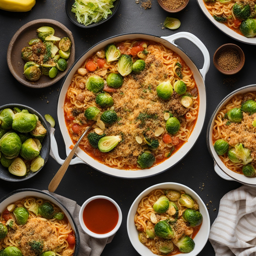 A delicious and cheesy baked ramen dish with a twist of Brussels sprouts for a unique flavor and texture. Perfect for a cozy dinner at home!