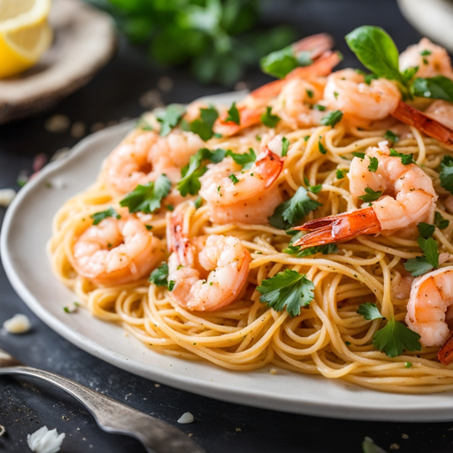 A delicious and flavorful pasta dish with garlic shrimp and a touch of Old Bay seasoning