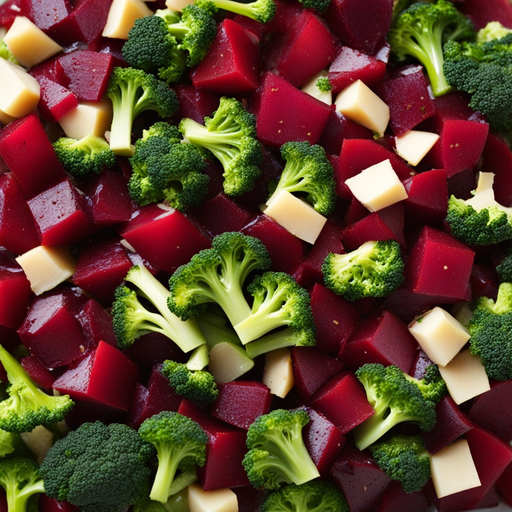 2. 2. In a large mixing bowl, toss together sliced beets and steamed broccoli.