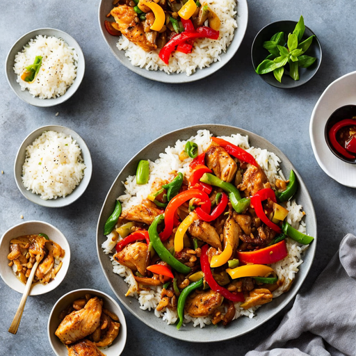 A delicious stir fry recipe with tender chicken, colorful bell peppers, and flavorful onions.