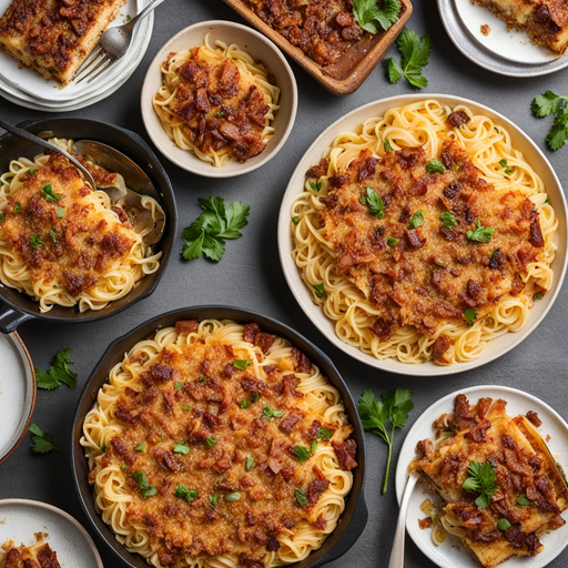 A comforting casserole with pancetta, noodles, and a creamy sauce