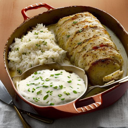 A delicious pork loin roast with creamy potatoes.