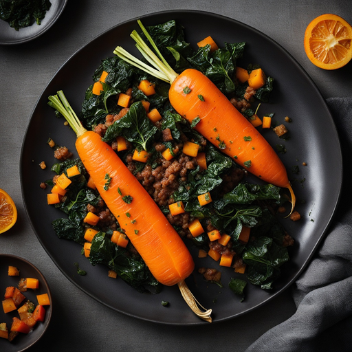 A delicious and nutritious main dish featuring a combination of chard, carrots, and pumpkin.