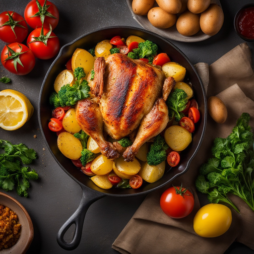 A hearty and nutritious one-pan meal with tender chicken, potatoes, mixed vegetables, and fresh tomatoes.
