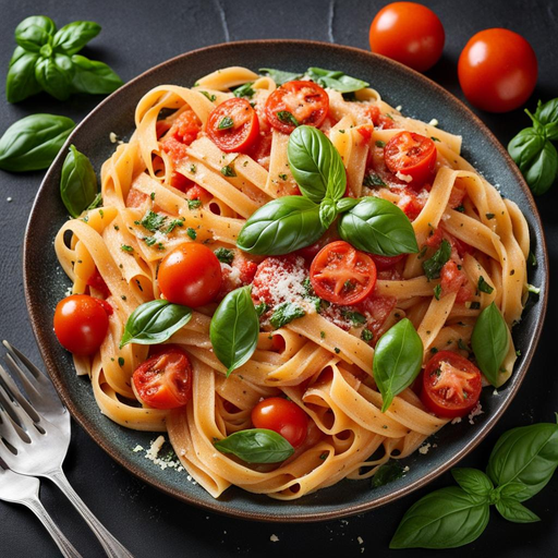 A simple and flavorful pasta dish with the freshness of diced tomatoes and fragrant basil.