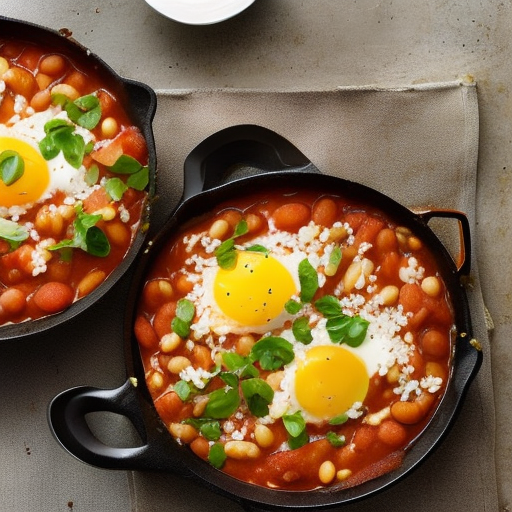 6. Serve the tomato and bean stew in deep bowls, garnished with grated cheese and fried eggs.