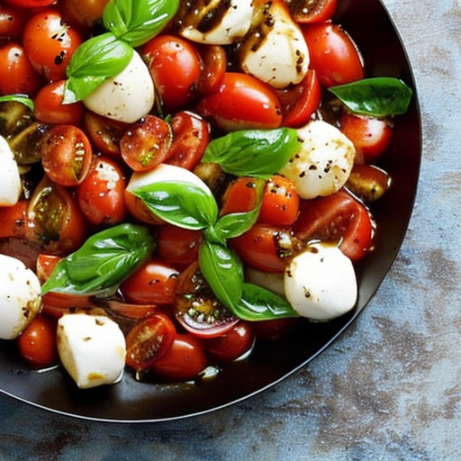 A refreshing salad that combines sweet cherry tomatoes, creamy mozzarella, and fresh basil leaves.