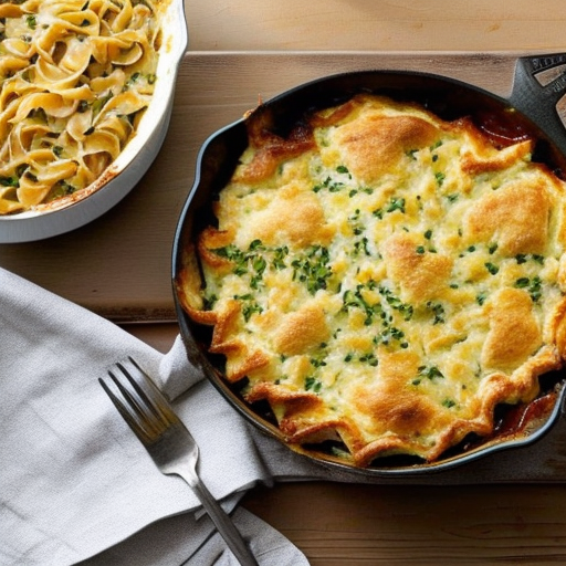 A comforting casserole with tender chicken and egg noodles, baked to perfection in a savory pastry dough crust.