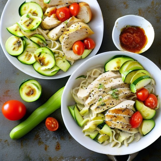 3. Grill or pan-fry the chicken and zucchini slices until cooked through.