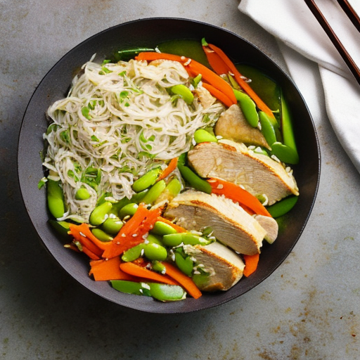 This recipe is a healthy and delicious combination of chicken, vegetables, and rice noodles. It's perfect for a quick and easy dinner or lunch.