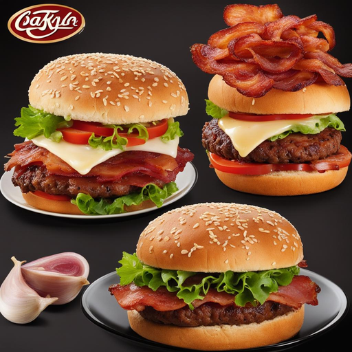 A delicious and savory bacon hamburger with a hint of garlic flavor.