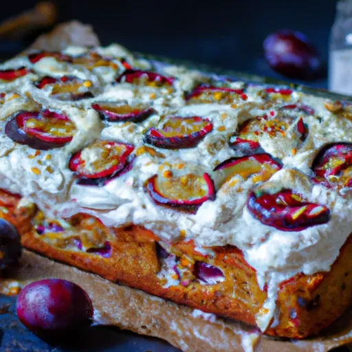 6. Pour batter into the pan. Arrange the plums on top of the batter.