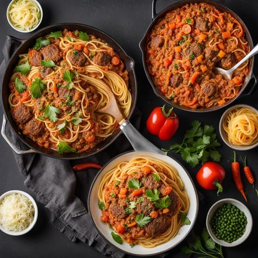 A hearty and flavorful dish featuring spaghetti, hamburger, and a variety of vegetables in a delicious sauce.