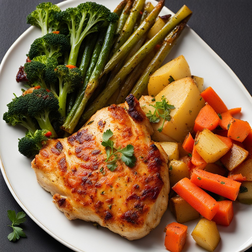A delicious and hearty dish featuring tender boneless chicken breast with carrots and potatoes baked to perfection.