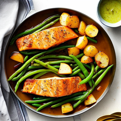 7. 7. Serve the chipotle baked salmon with roasted potatoes and green beans on a platter.