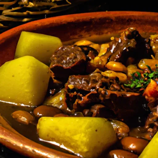 A flavorful and hearty main dish made with beef, potatoes, cinnamon, and beans.