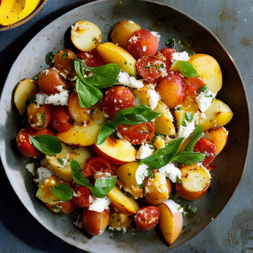 A refreshing salad with peaches and potatoes.
