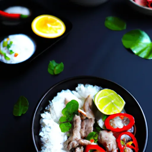 4. Add the rice, coconut milk, lemongrass, water, salt, pepper, and herbs. Stir to combine.