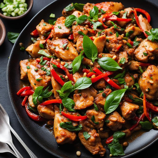A flavorful and spicy Thai dish with aromatic basil leaves and tender chicken