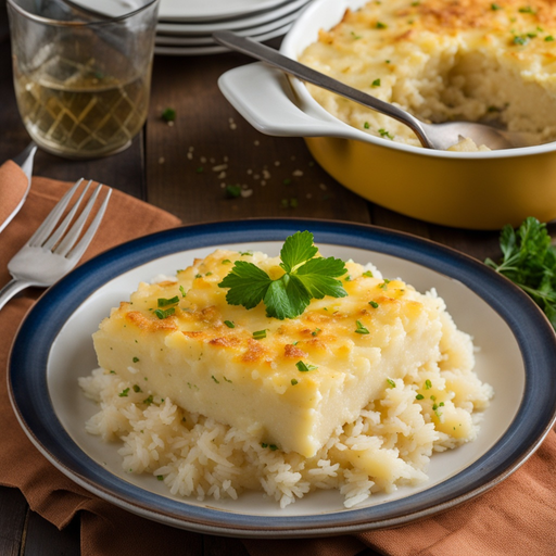 A comforting casserole dish made with creamy whole milk, tender Idaho potatoes, and fluffy long-grain rice.