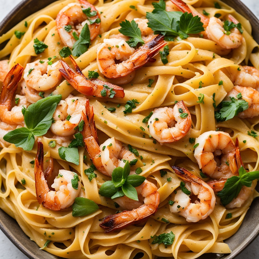 A delightful fusion of flavors in a creamy coconut balsamic sauce with succulent shrimp over fettuccine pasta.