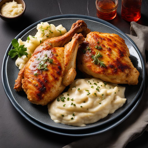 A classic American dish featuring juicy pan-fried chicken served with creamy mashed potatoes.