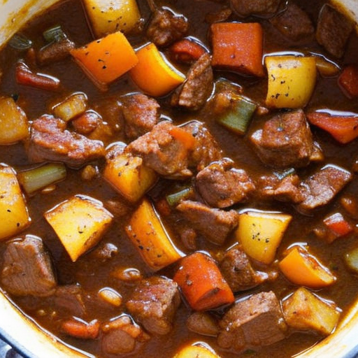 7. Bring to a boil, then reduce heat to low and simmer until the beef is tender and the vegetables are cooked through.