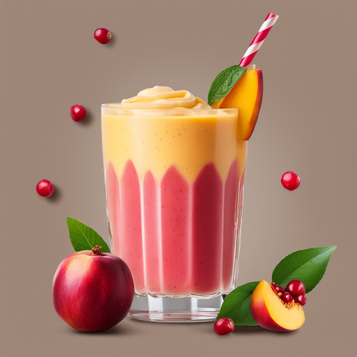 Un batido refrescante y cremoso lleno de la bondad de duraznos, mango y semillas de granada