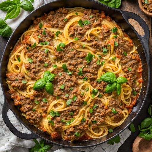 Un delicioso y reconfortante guiso que presenta calabacín, carne molida y espaguetis integrales horneados a la perfección.