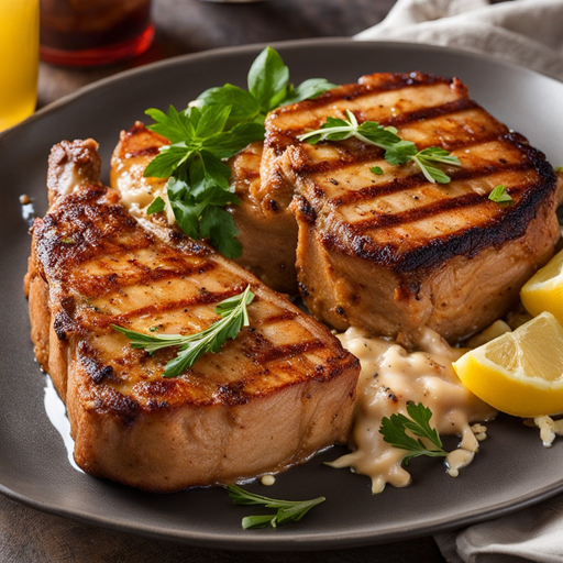 Chuletas de cerdo jugosas y sabrosas sazonadas con ajo y pimienta negra