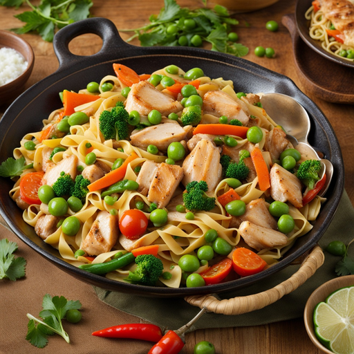 Un plato sabroso y abundante de salteado con pollo tierno y una variedad de verduras