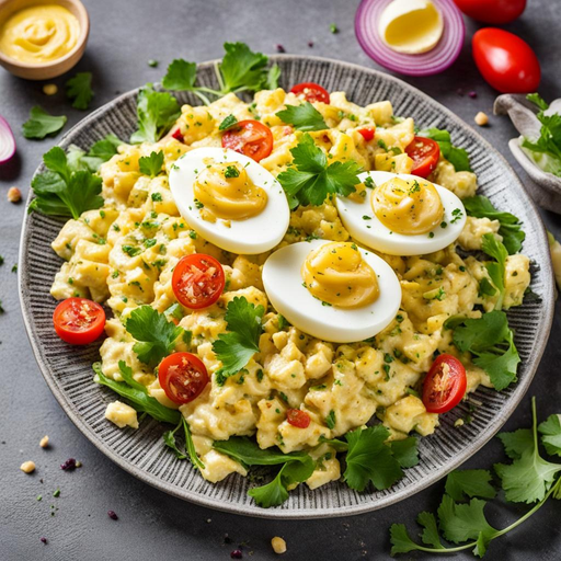 3. 3. En un tazón para mezclar, combinar los huevos picados, cebolla morada, mayonesa y mostaza.
