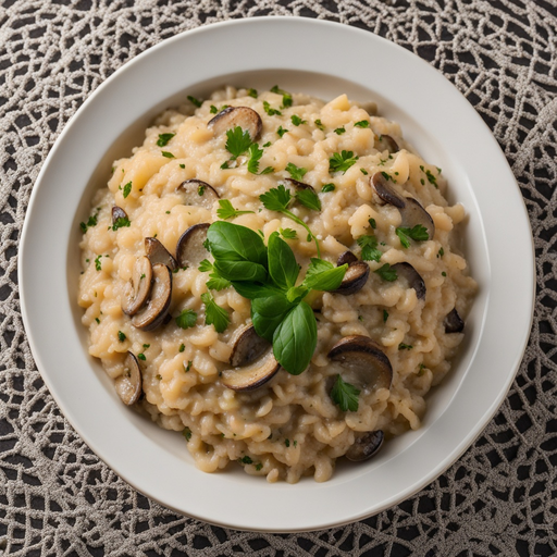 Risotto cremoso y sabroso hecho con champiñones, perfecto para una comida vegetariana.