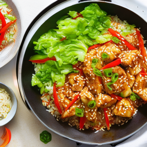 Un delicioso plato hecho con pollo salteado y arroz basmati.
