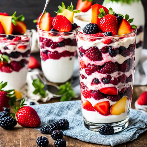 Un parfait delicioso y refrescante hecho con una mezcla de bayas, yogur y un toque de dulzura