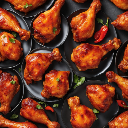 Deliciosos y sabrosos muslos de pollo cubiertos con salsa de chili dulce