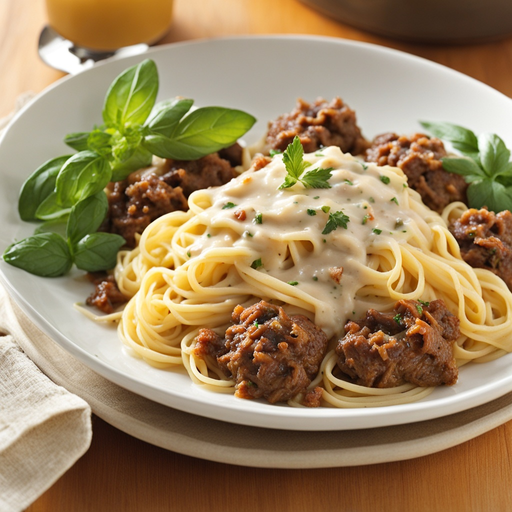 Un plato reconfortante y cremoso con sabrosa carne de ternera molida y una rica salsa de crema.