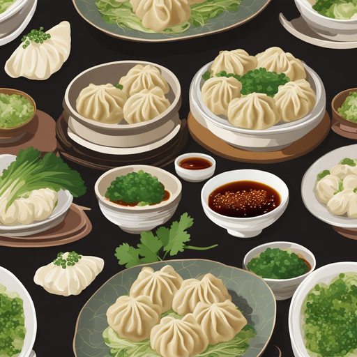 4. Coloca los dumplings en una cesta de vapor forrada con hojas de repollo