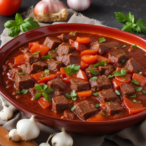 A savory and flavorful breakfast dish with tender beef in a rich tomato sauce.