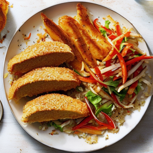 Un delicioso plato principal con pollo crujiente y ensalada fresca.